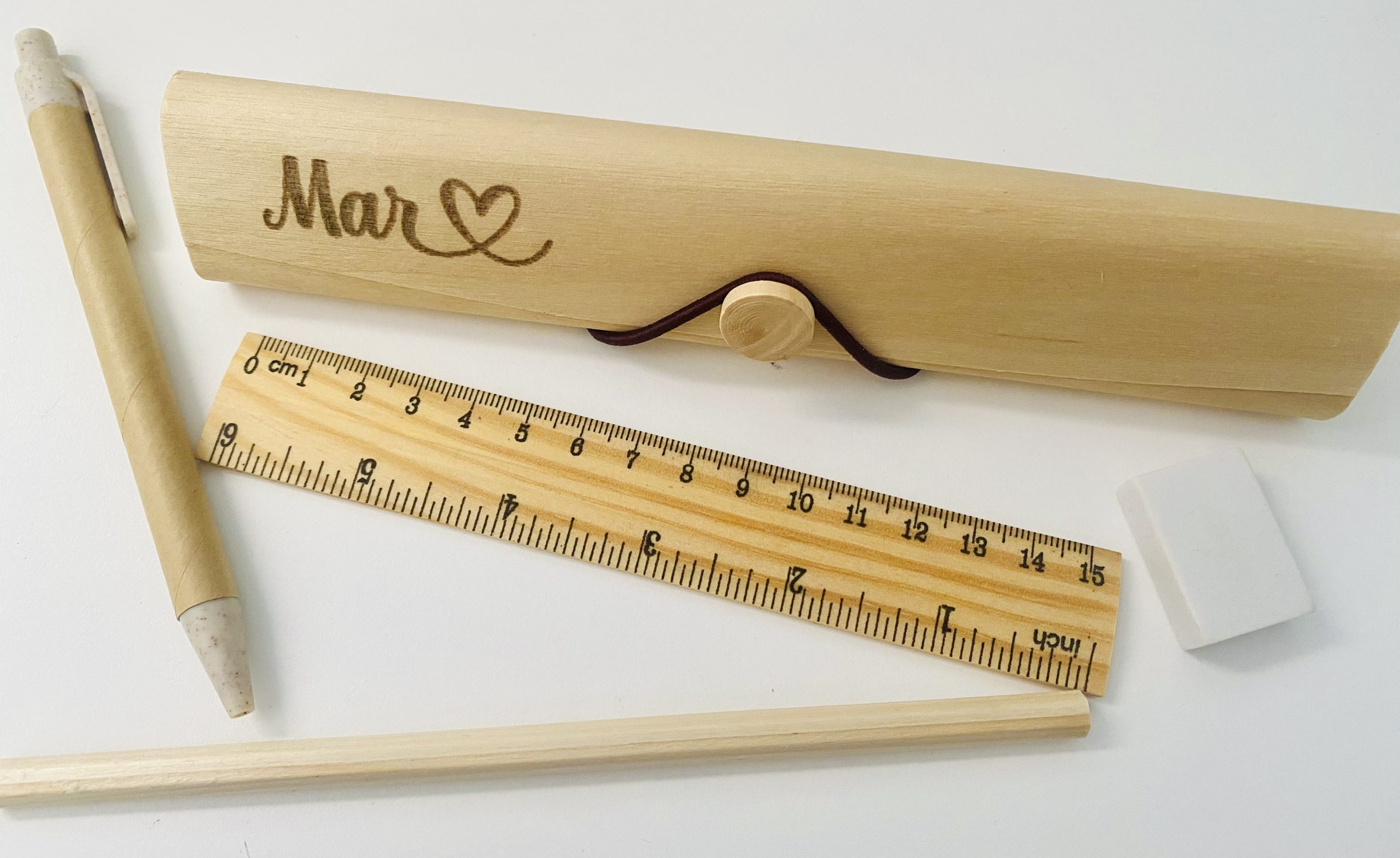 Kit de escritorio, lápiz grabado, estuche, regla…ideal para tu escritorio y todo recogido.