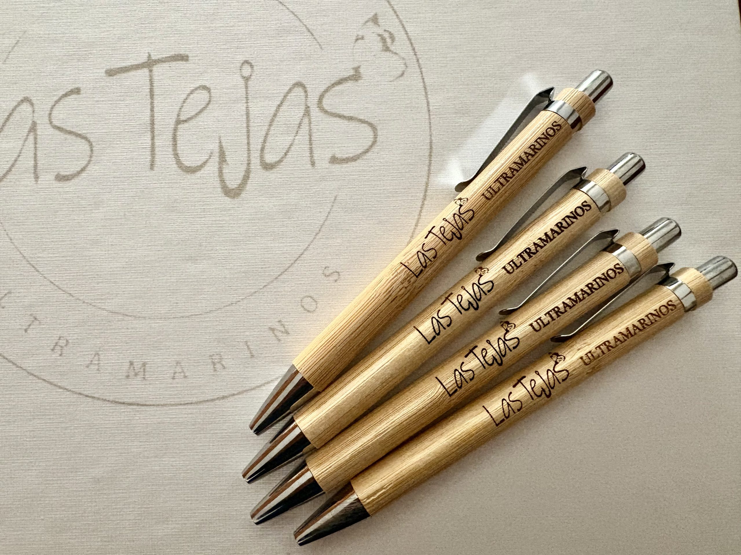 Bolígrafo de madera de bambú grabado con logo de empresa, una forma ideal de que tus clientes te tengan más presente.