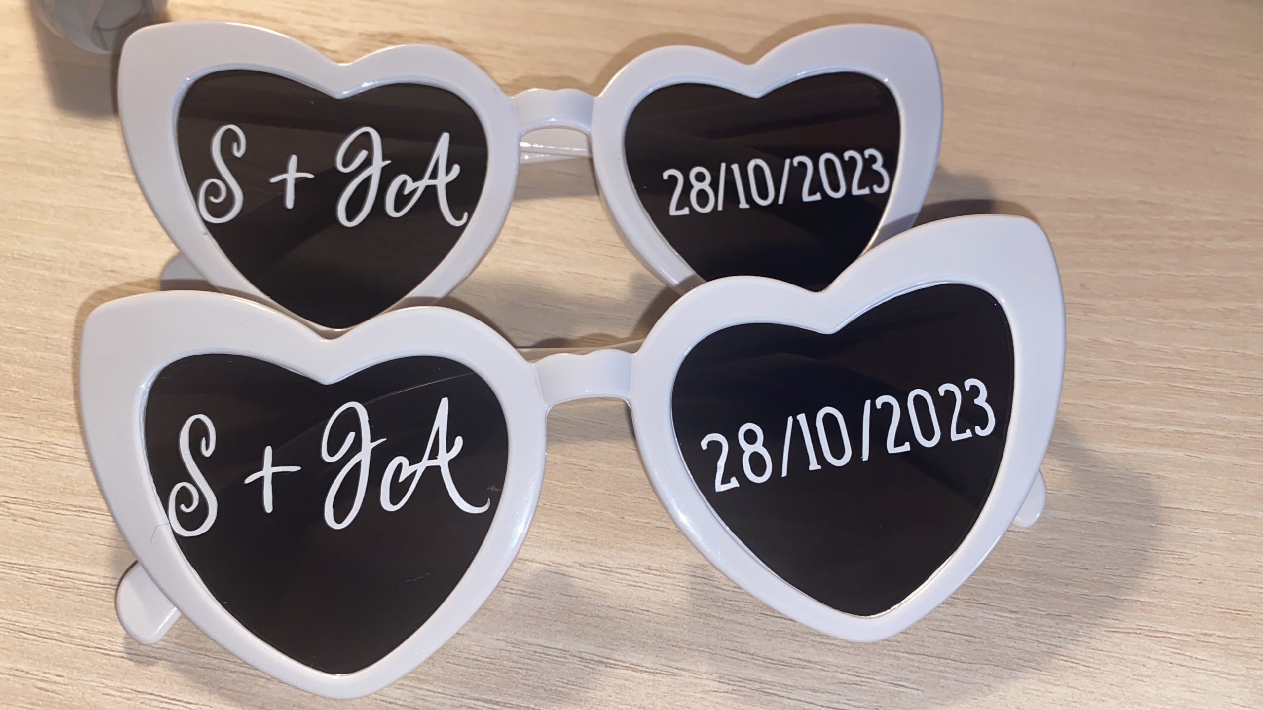 Estas gafas para el photocall llevan las iniciales y fecha de la boda.