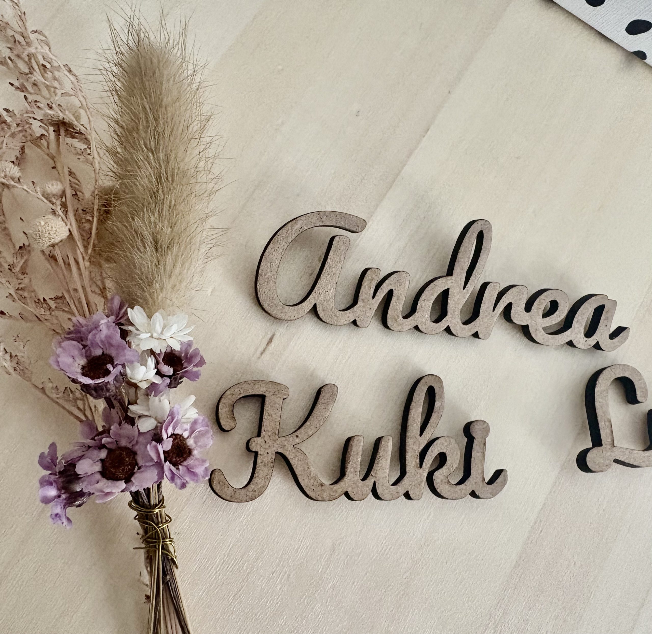 Marca sitios de madera e imán, con tipografía a elegir y altura del nombre.